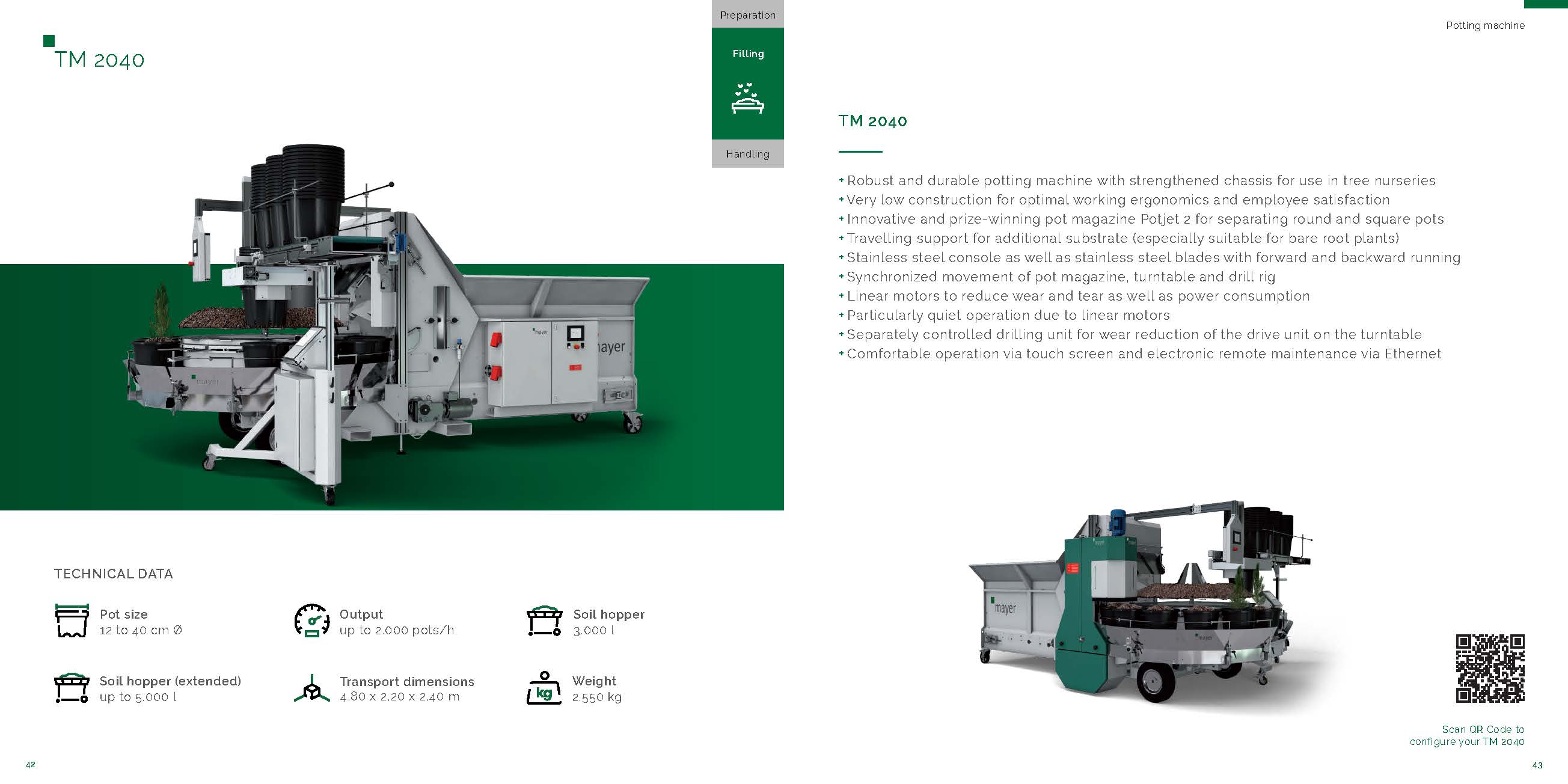 TM 2040不僅具有極其堅(jiān)固耐用的設(shè)計(jì),而且特別靈活。它可以分離和處理19-40cm的圓形盆以及7-22cm的方形盆。此外,最大2000個(gè)盆/小時(shí)的生產(chǎn)效率以及符合人體工學(xué)的特別低的結(jié)構(gòu)也制定了新的標(biāo)準(zhǔn)。同時(shí),內(nèi)置的直流電動(dòng)機(jī)可實(shí)現(xiàn)特別安靜的運(yùn)行并減少磨損。轉(zhuǎn)盤,上盤單元和鉆臺(tái)的同步不僅提高了效率,而且使機(jī)器的操作更加容易。此外,可以通過標(biāo)準(zhǔn)觸摸屏分別打開和關(guān)閉所有機(jī)器部件(鉆孔單元,肥料添加單元等)。創(chuàng)新螺旋式上盆單元Potjet2可以存儲(chǔ)不限種類的花盆,這意味著花盆的大小可以在幾秒鐘內(nèi)改變。以太網(wǎng)連接允許隨時(shí)進(jìn)行遠(yuǎn)程維護(hù),而沒有任何復(fù)雜性。